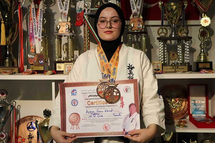Babasının antrenörlüğünde küçük yaşlardan beri karateyle ilgilenen milli sporcu Aynisa Sema Kocal, 2026'da Japonya'da düzenlenecek Kyokushin-Kan Dünya Şampiyonası'nda altın madalya kazanmayı hedefliyor.