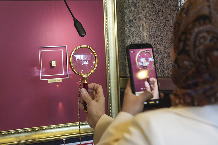 Günün anısına hatıra fotoğrafı çektirilmesinin ardından Göktaş, salonun girişinde açılan "Türkiye Yüzyılı Kadınları Mikro Art Resim Sergisi"ni gezdi.