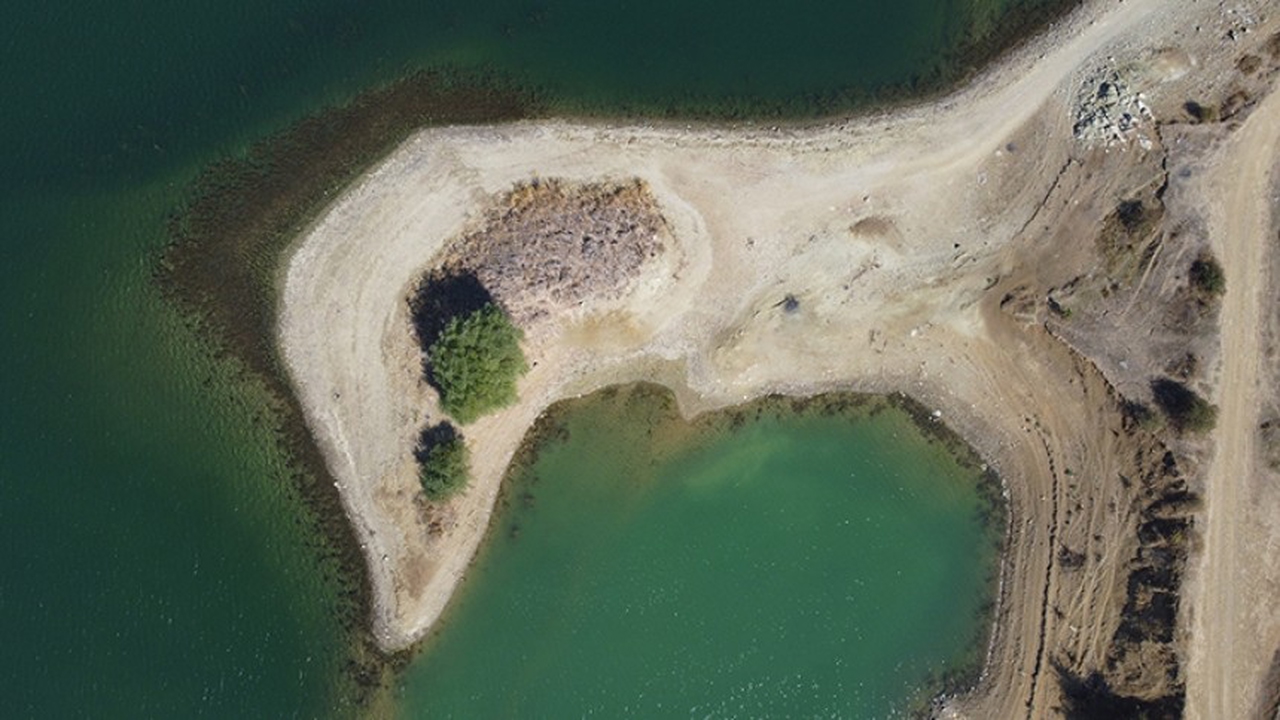Yaklaşık 7 milyon 270 bin metreküp su hacmine sahip Günyurdu köyündeki Günyurdu Mustafa Eldemir Barajı'nda suların çekilmesiyle adacıklar oluştu.