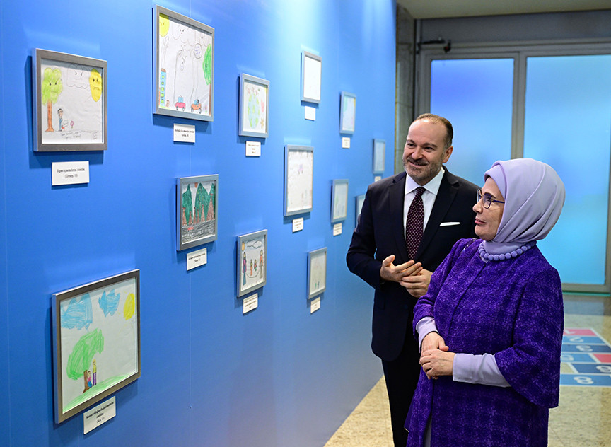 Erdoğan, ardından çocukların çizdiği 28 eserden oluşan "Çocuklar Büyüklerden Ne İster?" sergisini gezdi ve bu çizimlerin zirvenin çocuk merkezli yaklaşımını en yalın haliyle yansıttığını vurguladı.