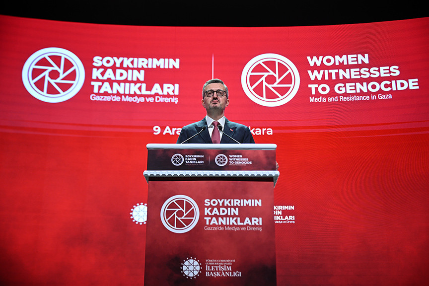 İletişim Başkanı Duran, Filistin davasından söz ederken medyaya ve iletişim alanına özel bir başlık açma ihtiyacı doğduğuna dikkati çekerek, "Hususi olarak sahada görev yapan gazetecilerin verdiği mücadeleye değinmek isterim. Bu anlamda Gazze'de görev yapan gazeteciler, canları pahasına, dünyaya İsrail'in uyguladığı zulmü, soykırımı anlattılar. Canları pahasına derken de bunu gerçek bir ifade olarak kullandığımı hepimiz biliyoruz." dedi.