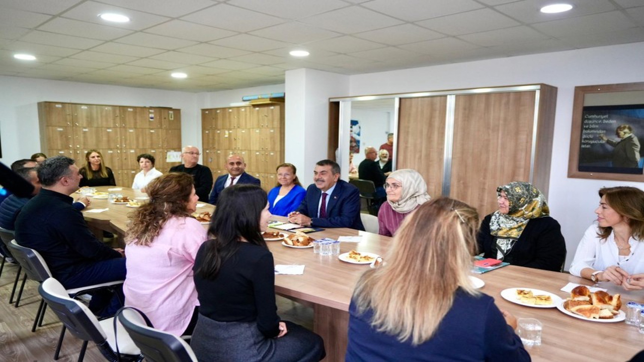 Bakanlıktan yapılan açıklamaya göre, Tekin, Betül Can Anadolu Lisesi'nde öğrenci ve öğretmenlerle bir araya geldi.