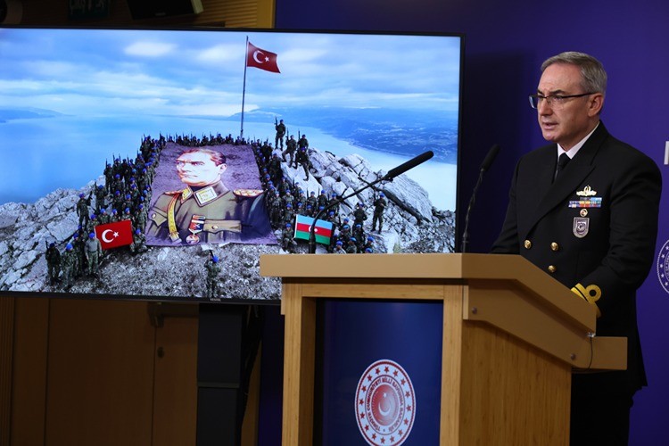 MSB Basın ve Halkla İlişkiler Müşaviri ve Bakanlık Sözcüsü Tuğamiral Zeki Aktürk, bakanlıkta düzenlenen haftalık basın bilgilendirme toplantısında konuştu.